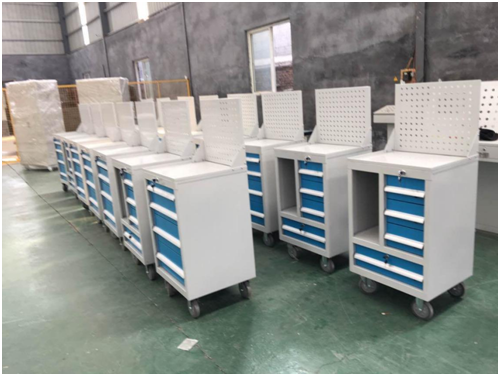 伴随车间管理更规范化,为了提高工作效率,降低操作者的劳动强度,开始广泛使用车间工位器具和工作台、工具柜等。以前企业领导都是在模仿使用工作台、工具柜使用场景。而现在企业要求做的工位器具越来越人性化了。如下图,山东轨道交通集团为一线生产,订制的工作台,考虑工具摆放和检测电脑位置等诸多因素设计而成的。